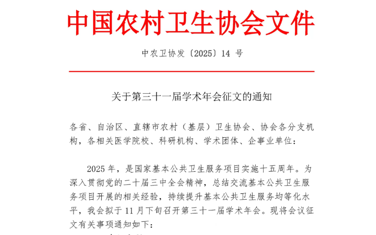 关于2025年农村卫生发展大会论文汇编收录的通知