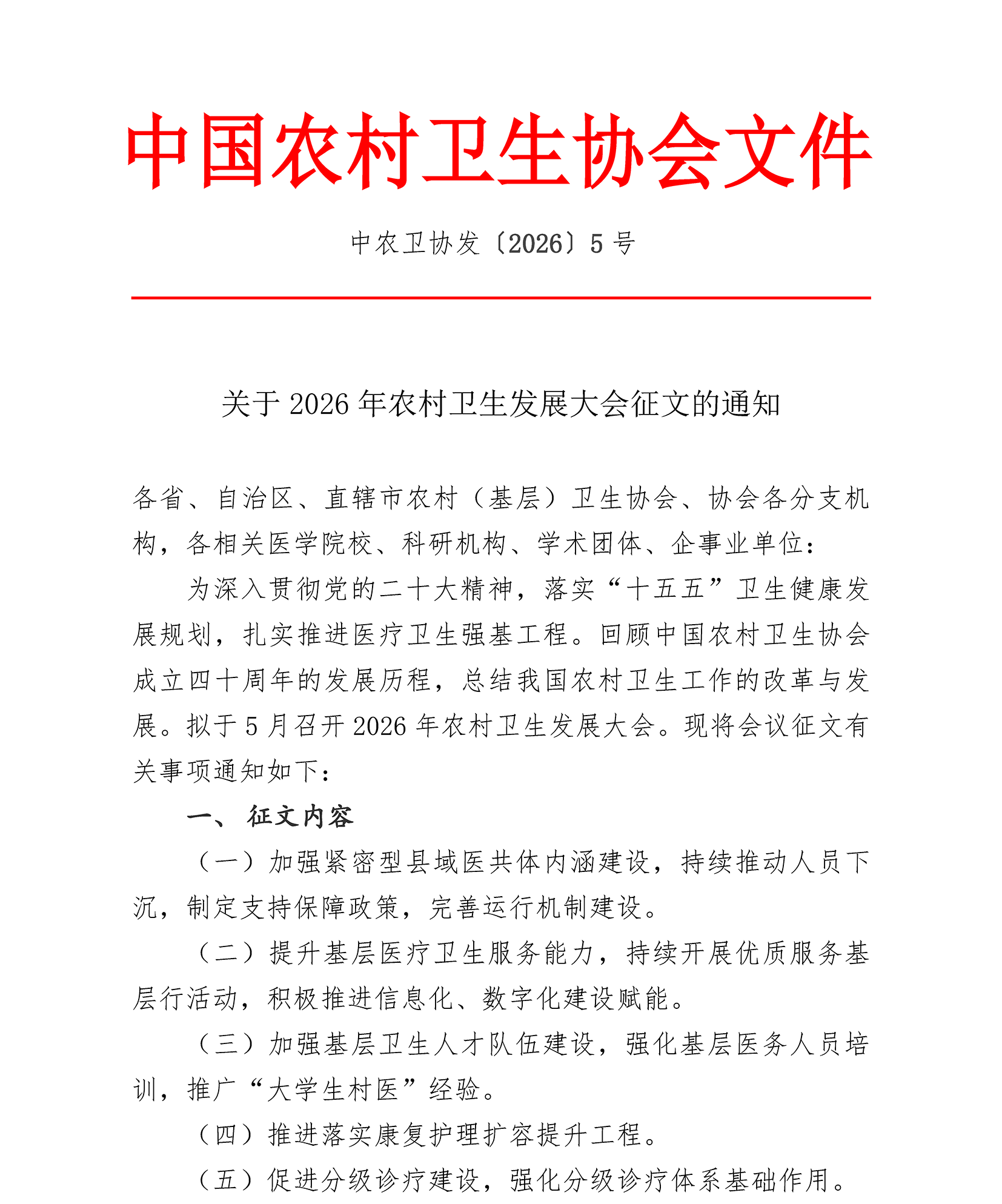 关于2026年农村卫生发展大会征文的通知